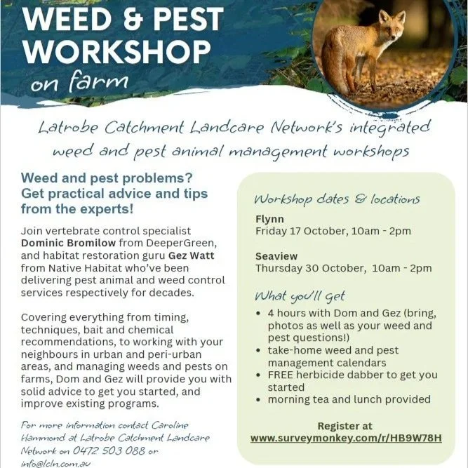 🔗 Register here:www.surveymonkey.com/r/HB9W78HThis workshop is part of LCLN’s 2025 Weeds & Pests Community Awareness & Capacity Building Project, supported by the Victorian Government through the Partnerships Against Pests Program.